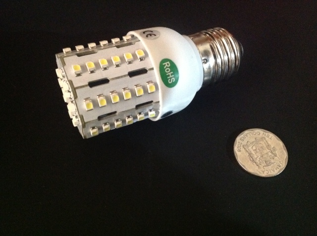 The 3 watt bulb gives 330 lumens and has a rated voltage of 85~265VAC. It is equivalent to a 7 watt flourescent or 28 watt incandescent.