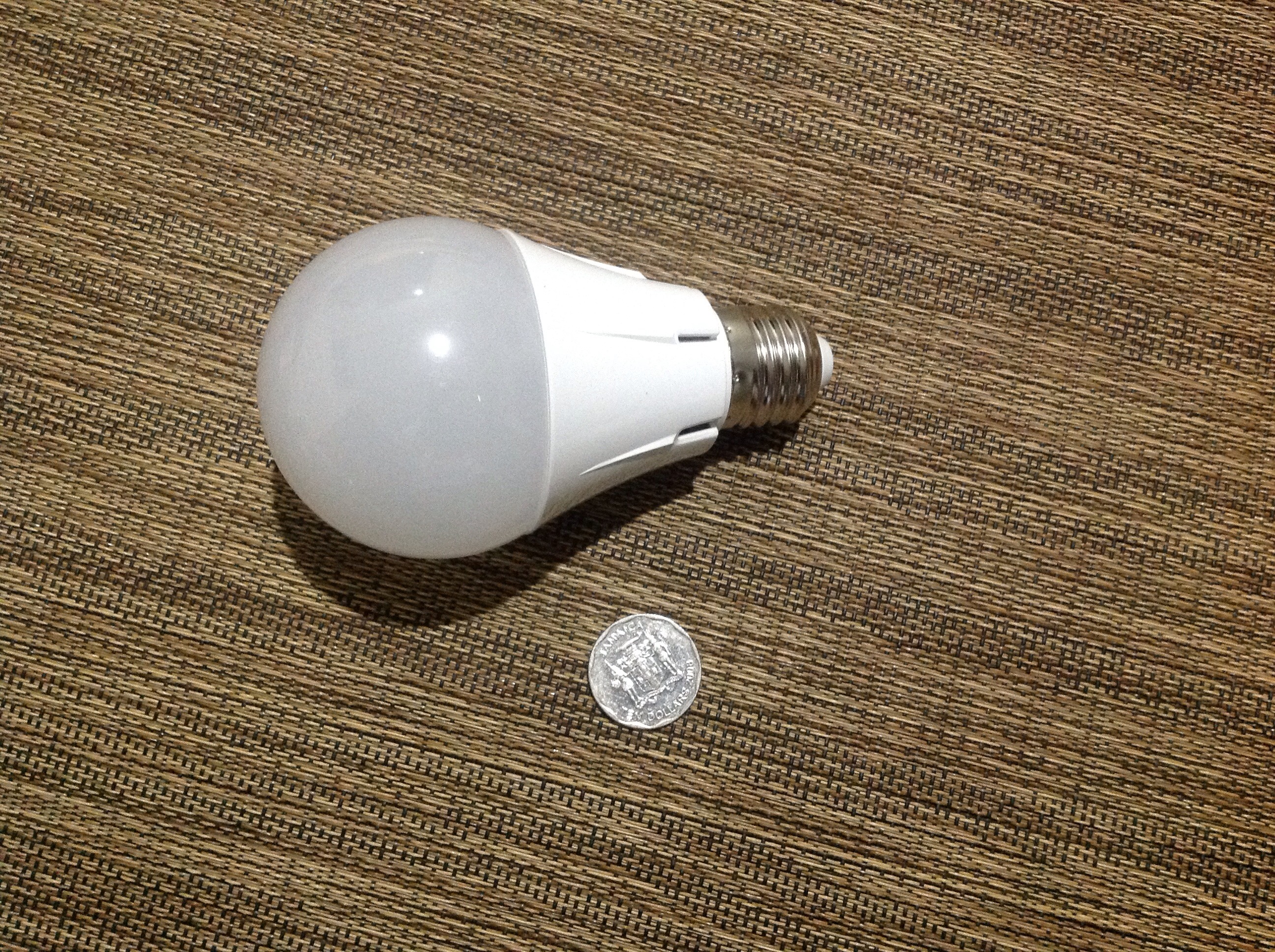 7 watt bulb (620 lumens) can be used to replace a 14 or 15 watt compact fluorescent bulb.